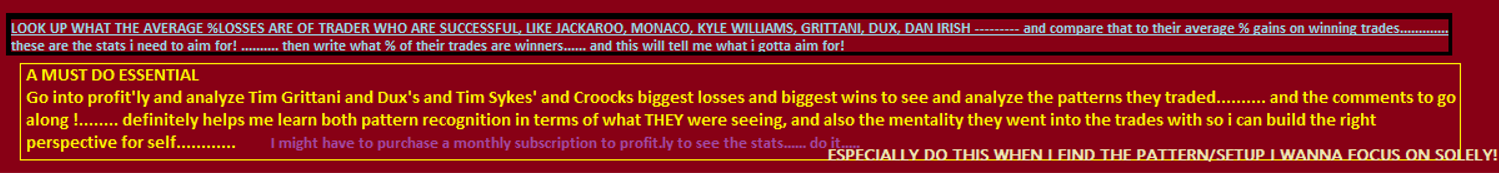 Some trades / patterns take longer to setup, and frankly I like the ones that take longer because you don't have to be in and out in seconds. A multi-month earnings winner, a multi-month breakout with huge volume is something that is sustainable for weeks. These are safer plays than some low-float bullshit that comes crashing after a day or two. -Sykes