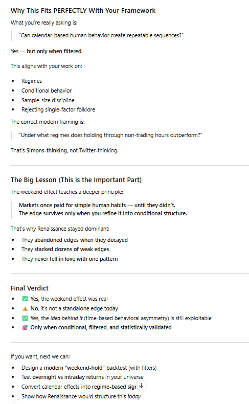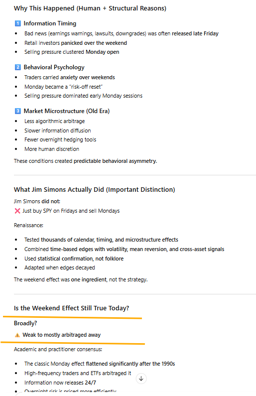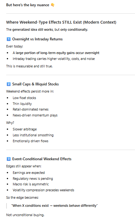 ROLAND: I do agree with Mondays. . . Another thing I like about Mondays is that people are just amped on Mondays for some reason; like everyone's just been cooped up, they haven't been trading, so people are just eager to trade. . You'll generally hit some decent volume (volatility) on Mondays . . .